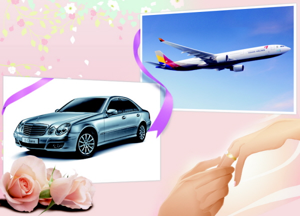 아시아나에 따르면 오는 5월 1일부터 내년 4월 30일까지 아시아나항공으로 서울/경기지역을 출발하여 허니문을 가는 고객을 대상으로 고품격 메르세데스-벤츠 웨딩카 이벤트를 실시한다.
