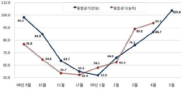 | <600대 기업의 5월 기업경기실사지수(BSI ; Business Survey Index)는 103.8로 나타나, 다음 달 기업경기가 전월대비 소폭 호전될 것으로 전망됐다.> | ||