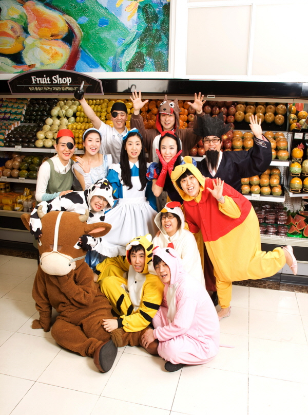 그 밖에 단호박 코너에서는 신데렐라, 곶감 매장에는 호랑이, 꿀 매장에는 아기곰 푸우, 계란 매장에는 황금알을 낳는 닭(황금알을 낳는 거위 패러디), 오렌지 매장에는 ‘오렌지 나라의 앨리스(이상한 나라의 앨리스 페러디) 등의 14가지 테마로 캐릭터 복장을 입은 판매사원들이 근무한다.