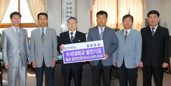 [프라임경제] 우석대학교 총동문회(회장 채규일)가 29일, 학교 당국에 발전기금 1천만원을 쾌척했다.