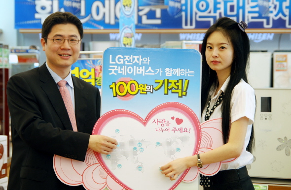 LG전자는 국제구호개발 NGO인 ‘굿네이버스’와 함께 전국 매장에서 ‘100원의 기적’ 캠페인을 벌여 고객이 매장을 방문할 때마다 100원씩 적립한다. 행사기간 동안 마련된 기금은 국내 결식아동을 돕는데 쓰일 예정이다.