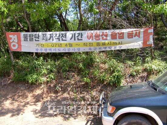 어등산관광단지 개발권은 지난달 말 금광기업으로 변경됐고 국방부(육군보병학교 불발탄제거부대)는 불발탄 제거작업에 몰두하고 있다.