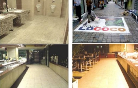 착착이(www.po119.com) 시공은 기존 붙이는 테이프 방식이나 코팅방식이 아닌 표면에 미세한 요철을 일정한 간격으로 만들어 최대 마찰력을 이끌어내는 에칭방식을 사용한 획기적인 시공서비스. 대리석, 화강암 등의 자연석, 타일, 콘크리트 등에 사용하며 시공 전후의 바닥 표면의 차이가 거의 없을 뿐 아니라 한번의 시공으로 반영구적인 효과를 기대할 수 있다는 게 가장 큰 특징이다.