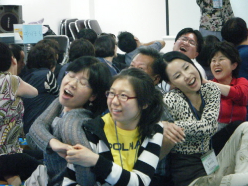 | ▲ 사진: 웃음치료사 자격증 과정에 참가한 교육생들의 환한 웃음 |