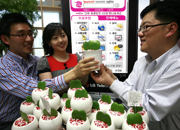 | < LG텔레콤은 15일 ‘스승의 날’을 맞아 전 사원의 뜻을 모아 임원 및 팀장들에게 감사 카드와 선인장 화분을 전달했다.> | ||