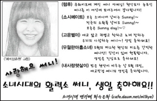 멤버 써니가 일간지 지면 광고를 통해 20~30대 팬들의 생일 축하를 받은 것이다.