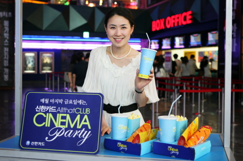 [프라임경제] 신한카드는 매월 마지막 주 금요일 서울, 부산, 광주, 대전, 대구 등 전국 5개 도시에서 1500명(동반 1인 포함)을 초청해 최신 개봉 영화, 간식 등을 제공하는 ‘신한카드 Cinema Party(시네마 파티)’ 서비스를 시작한다고 17일 밝혔다.