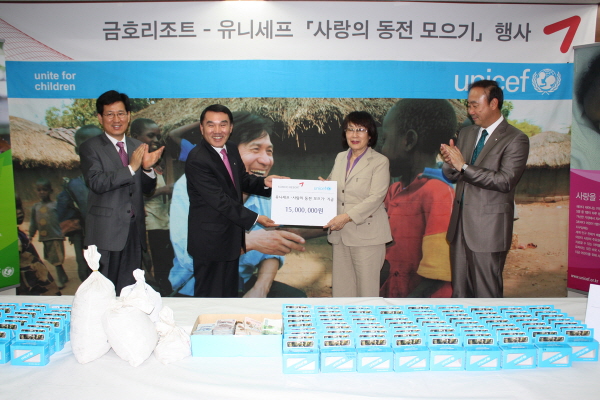 [프라임경제] 금호리조트가 가족의 달 5월을 맞이하여 전 임직원 및 아산스파비스 고객들과 '사랑의 동전 모으기' 운동을 전개하고, 18일 모금액 1천5백만원을 국제연합아동기금(UNICEF)에 전달했다고 밝혔다.