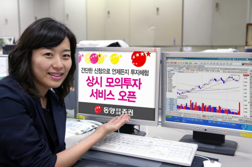 동양종금증권 상시 모의투자서비스는 현재 진행 중인 주식 모의투자대회와는 달리 기간에 관계없이 언제라도 홈페이지에서 간단한 아이디 신청과 참가 신청만으로 이용이 가능해HTS(홈트레이딩시스템) 주식 및 ELW, ETF, 선물옵션 등 각종 투자상품 매매를 직접 체험하면서 투자 원칙과 경험을 쌓아갈 수 있다.