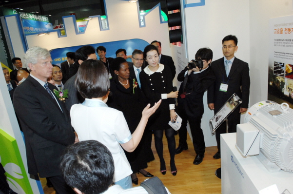 또 최근 경제성과 안정성 그리고 청정성이 뛰어나 친환경 자동차 원료로 관심을 받고 있는 압축천연가스인 CNG(Compressed Natural Gas) 충전소 모형도 직접 볼 수 있다. 이와 함께 최고 90%까지 에너지를 절감할 수 있는 LED를 활용한 신호등과 빌딩 조명, 폐기물 및 폐수처리시설, 메탄가스 재활용 설비, 재활용 섬유제품 등 자원순환 분야의 제품도 선보이고 있다.