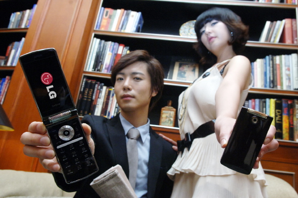 | <LG전자 모델들이 성공한 비즈니스맨을 위해 디자인 및 기능이 특화된 'LG-KU4000'제품을 선보이고 있다.> | ||