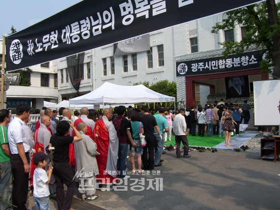 하지만 노 전 대통령의 서거를 계기로 광주시민들은 달라진 모습을 보이고 있다. 월요일 오후지만 추모행렬은 줄지 않고 있다. 직장인들의 퇴근이 시간이 지나며 분향소를 찾는 발길은 불어나고 있다.