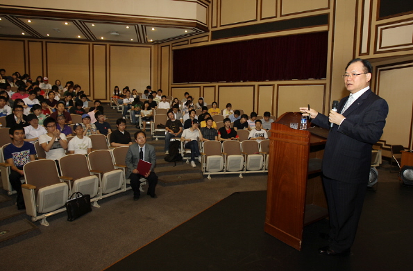 | <손종호 LS전선 사장은 26일 오후 한양대 경영학부 강의에서 400여명의 학생들을 대상으로 ‘LS전선의 변화와 도전’이라는 주제로 특강을 했다.> | ||