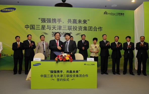 삼성전자는 26일 천진 쉐라톤 호텔에서 박근희 중국본사 사장과 대형 부동산 전문 투자회사인 천진삼련투자그룹 관계자들이 참석한 가운데 중국 천진의 다목적 건축단지인 '동려연건원(東麗軟件園)'에 시스템 에어컨 및 공조설비 시설을 합해 약 1500만불에 공급하는 계약 체결 행사를 가졌다.
