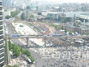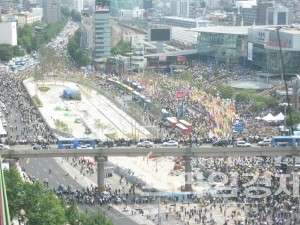 ◆서울역 광장은 모여드는 시민들로 인해 운구차량이 한 때 움직이지 못했다.
