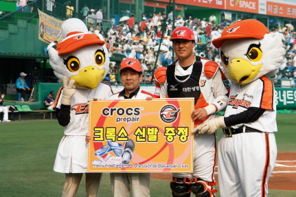 [프라임경제]크락스코리아는 30일 대전 한밭체육관에서 펼쳐진 한화-두산과의 경기에 앞서 이번 시즌 한화이글스 선수 및 코치단에 운동 전후 회복 신발을 지원하는 내용의 ‘크록스 Prepair신발 지원 협약식’을 가졌다.