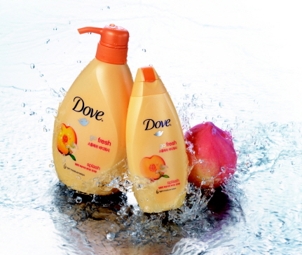 ‘CKOne’, ’J’adore’ 등 유명 스테디 셀러 향수의 조향사 ‘앤 고틀립(Ann Gottlieb)’이 도브와 손잡고 만든 제품으로써 향긋하게 퍼지는 복숭아 향이 일품이다. 또한 크림처럼 풍부한 거품이 노폐물을 부드럽게 제거해 주고 1/4 라이트 모이스처 로션 성분이 여름철 끈적이지 않는 보습으로 피부를 생기 있고 촉촉하게 가꿔준다. 샤워 후에도 복숭아의 잔향이 남아 기분까지 밝게 해준다 (도브 고 후레쉬 스플레쉬 바디워시 / 550g 8천9백원, 1kg 1만2천4백원)