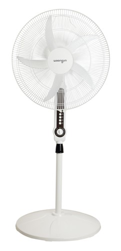 가정용 14인치 선풍기 3종(모델명: WF-MF1401B, WF-MF1445B, WF-MF1436B)은 화이트 색상의 본체에 블루와 그린 칼라로 포인트를 준 실용적이고 깔끔한 디자인으로, 5엽 날개를 채택해 부드러운 바람을 제공한다. 또, 좌우 90도 회전과 상하 각도 조절로 풍향 조절이 가능하며, 180분 예약 타이머 기능도 채용했다.