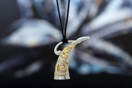 이번 출시된 드라마 자명고 호신용 뿔피리 쥬얼리는 뿔모양에 금색 문양으로 포인트를 주었고 전체적으로 점조각 세팅하여 세련된 고급스러움을 강조했다.또한 쥬얼리를 입에 물고 불면 피리 소리가 나와 요즘 같은 초강력 범죄가 유행하는 시대에 자신을 지킬 수 있는 호신용 쥬얼리라는 컨셉으로 사랑하는 사람 혹은 나를 지켜주는 수호천사 쥬얼리라는 성격을 띄고 있다.