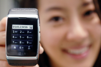 | <LG전자 모델이 7월 유럽지역을 시작으로 전세계 휴대폰시장에 출시되는 '3세대 터치 와치폰'을 선보이고 있다.> | ||