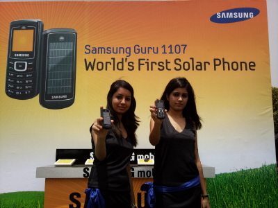 삼성전자는 지난 10일 인도 델리 인근의 삼성 노이다 복합단지에서 삼성전자 서남아총괄 신정수 전무, 파루크 압둘라 인도 신재생에너지부문 장관 등이 참석한 가운데 태양광 충전 휴대폰 '크레스트 구루(글로벌 명칭: 크레스트 솔라)'의 출시 행사를 개최했다.