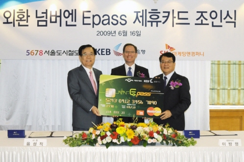 | <사진=16일 은행회관에서 음성직 서울도시철도공사 사장, 래리 클레인 외환은행장, 이방형 SK마케팅앤컴퍼니 대표이사(왼쪽부터)가 외환은행 넘버엔 Epass 제휴카드 조인식을 갖고 있다. > |