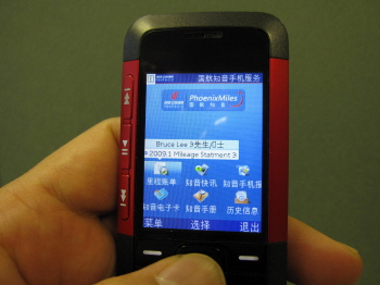 | <에어차이나의 800만 명 회원들에게 제공되는 모바일 고지서 서비스 초기 화면.> | ||