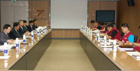 | <사진=노조는 붉은 조끼를 입고 노사협의에 나서는 관행이 있다. 과거 노사협의 자료사진> |