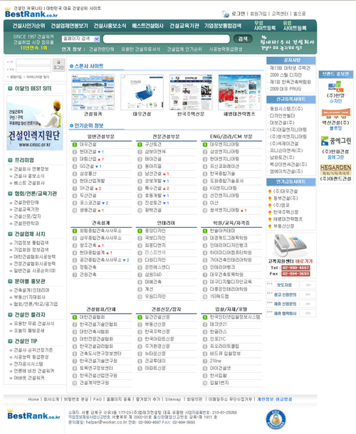 또 ‘건설사 인기순위’ 메뉴에서는 일반건설, 전문건설, 엔지니어링/감리/CM, 건축설계, 인테리어, 학원/교육/자격증, 건설협회/단체, 건설신문/잡지, 입찰/자재/포털 등 9개 부문에서 인기순위를 매긴다. 베스트랭크는 향후 건설관련 주요 협회 및 민간기관, 전문포털들과 연계해 보다 다양한 건설정보를 검색할 수 있도록 할 방침이다. 웹사이트 순위분석 전문업체와도 제휴를 추진 중이다.