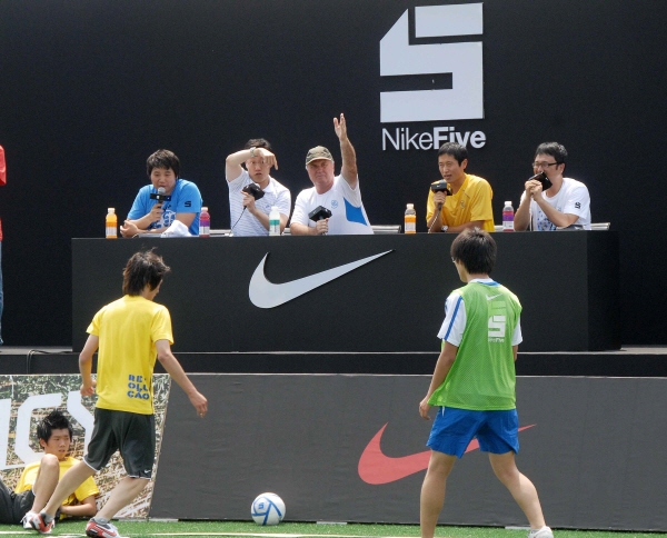 | <거스 히딩크 감독이 한국의 축구 꿈나무들을 위한 ‘나이키 파이브(이하 나이키5)’ 5대5 축구대회에서 이영표 선수와 5대5 축구 코칭 대결을 펼쳤다.> | ||