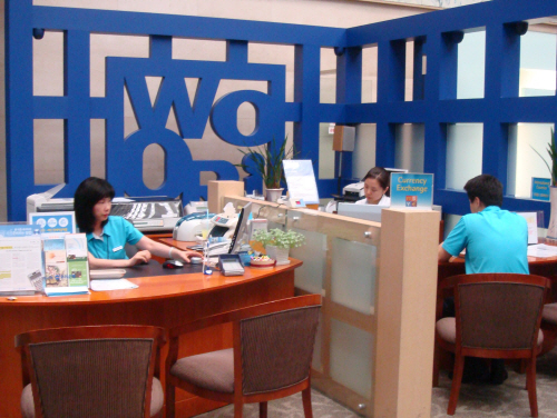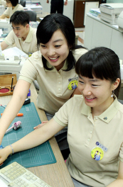 | <사진=2009년에 지급된 연두색 간편복을 입고 근무하고 있는 국민은행 직원들> | ||
