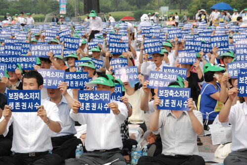 | < 사진 = 지난 8일 여의도 공원에서 전국 손보 노조 측의 집회 현장 > | ||