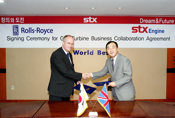 | <사진설명 = STX엔진이 최근 창원 본사에서 정동학 STX엔진 사장(사진 오른쪽), 플로이드(Dr. Floyd) 롤스로이스사 부사장(사진 왼쪽)이 참석한 가운데 발전용 가스터빈 발전설비 공급에 관한 사업협력협약을 체결했다고 21일 밝혔다> | ||