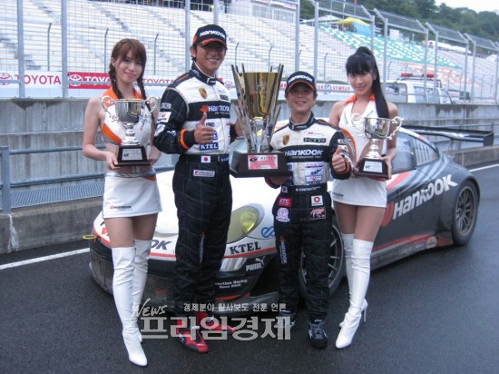 키노시타와 카게야마 등 2명의 드라이버가 이끄는 ‘한국 포르쉐 팀’은 7월 26일 일본 미야기현에 위치한 수고(SUGO) 서킷에서 열린 일본 수퍼GT300 제5전 결승 경기에서 총 21개의 출전 팀 중 1위를 차지했다. 한국타이어는 올해 4월 스즈카 전에 이어 2번째 출전한 이번 경기에서 또다시 우승을 차지함으로써 2전 참가하여 2전 전승을 달성하는 진기록을 세웠다. 또한, 4월 스즈카전 승리로 한국타이어의 DRY 타이어의 우수성을 입증했다면, 이번 경기에서는 WET 타이어로 다시 우승함으로써 빗길 드라이빙 성능의 우수성을 대외에 과시하는 계기가 됐다.