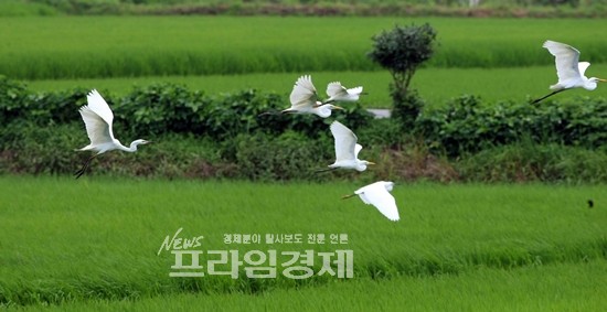 [프라임경제]친환경농법으로 농약이 사라지면서 전남 농촌 들녘에 풍년을 부르는 길조로 알려진 왜가리떼가 몰려들고 있다.
