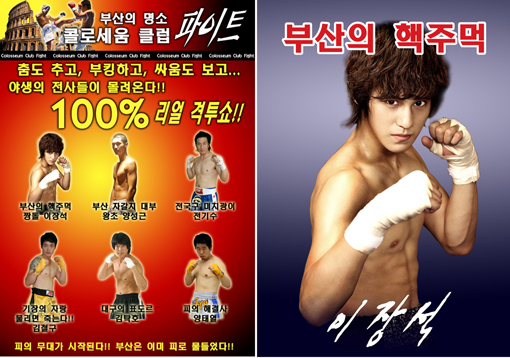 이는 극중 장석(김범)이 파이터로 나서는 '콜로세움 클럽 파이트'의 홍보 전단지. '춤도 추고, 부킹하고, 싸움도 보고...야생의 전사들이 몰려온다. 100% 리얼격투쇼'라는 문구아래 6명의 파이터들이 소개된 이 전단지에서 김범은 '부산의 핵주먹 짱돌 이장석'으로 맨 처음 소개되어있다.