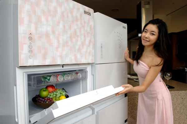 | LG전자가 '프리스타일' 컨셉의 2010년형 디오스(DIOS) 김치냉장고를 대거 선보이며, 성수기 시장 공략에 나선다.(왼쪽부터 세계적인 디자이너 '멘디니' 디자인, 은하수를 형상화한 '미리내' 디자인 적용한 디오스 제품)> | ||