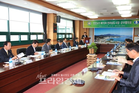21일 완도군청에서 열린 민선4기 전남 시장․군수협의회(회장 황주홍 강진군수) 15차 회의에는 화순, 장흥, 강진, 무안, 장성군 등 13개 시군 시장·군수가 참석했다.