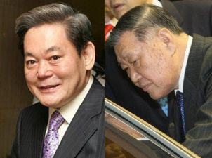 | <이건희 전 삼성그룹 회장(좌)과 정몽구 현대차 회장.> |