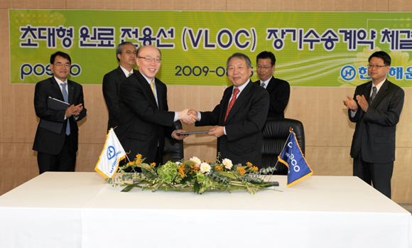 [프라임경제] 한진해운이 포스코와 20년 장기 수송계약을 체결했다. 업계에 따르면 한진해운은 25일 포스코와 1조4000억원 규모의 장기 수송계약을 체결, 앞으로 20년 간 제선용 철광석을 포스코에 실어 나르기로 했다. 한진해운이 포스코와 신조선 발주를 통한 전용선 계약을 맺은 것은 1994년 이후 처음이다.