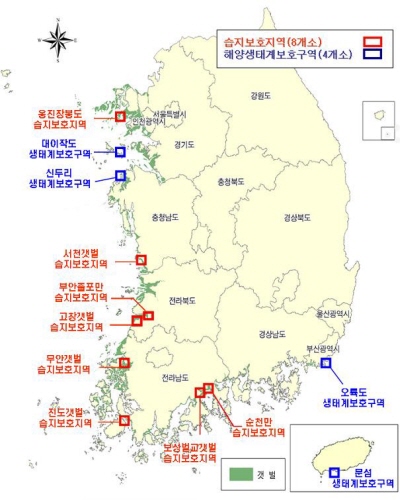 *해양보호구역이란 생물다양성이 풍부한 지역, 해저 및 해양경관이 수려한 지역, 해양생물의 서식지·산란지로서 보전가치가 인정되는 해역 등을 정부가 지정한 지역이다. 연산호 군락지인「제주도 문섬 생태계보전지역」을 비롯 철새 도래지인「순천만 습지보호지역」등 12개 지역이 있다.