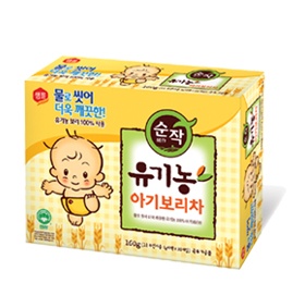 샘표는 민감한 아기들이 안심하고 마실 수 있도록 아기전용 유기농 보리차를 선보였다. 3년동안 유기농으로 기른 보리만 사용해 농약이나 화학비료 잔여물 걱정이 없으며 보리 알 한 알, 한 알을 맑은 물로 씻어서 만들어 깨끗하다. 또 물로 씻은 뒤 볶기 전에 보리를 직접 증기로 찌는 공정을 추가해 물에 쉽게 우러나고 맛은 더 부드러워 아기들이 마시기 좋다. 포장 박스 내부에 묶음 비닐 팩을 넣어 사용하고 남은 티백을 더욱 위생적으로 보관할 수 있다.