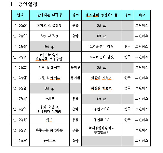 이번 예술제는 무용, 음악, 극예술, 뮤지컬 장르 중심으로 진행된다.