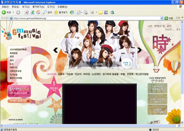 <‘2009 광명음악축제’ 공식 홈페이지 화면> |