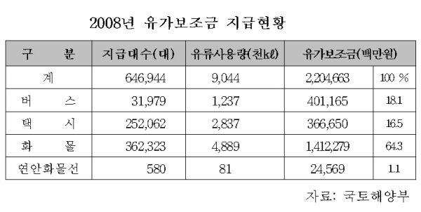 국토해양부의 2008년 유가보조금 지급현황 자료에 따르면, 지난해 지급된 유가보조금의 64.3%가 화물운전자에게 지급됐다. 카드 의무화 사용으로 인해 다른 차량에 비해 비교가 되지 않을 정도로 높은 화물차 수수료는 카드사 입장에선 분명 매력적인 대목이다.