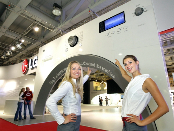 | <LG전자가 독일 베를린에서 열리는 IFA 전시회에서 참가, 전시관에 유럽 표준 크기 중 최대 용량 11kg를 구현한 드럼세탁기를 형상화한 대형 조형물을 설치해 눈길을 끌고 있다.> | ||
