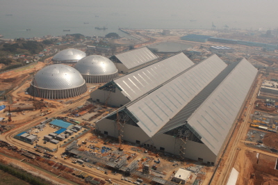 [프라임경제] 현대제철의 ‘히든카드’인 세계 최초 친환경 제철소가 마침내 그 베일을 벗었다. 현대제철은 2일 창사 이래 최대 금액의 돈이 투자된 ‘돔형 제철원료 처리시스템’을 일부 공개했다. 5조8000억원이란 어마어마한 돈이 투자된 이 시스템은 친환경 설비로 원료운송 선박에서부터 제품생산 단계까지 제철원료가 외부에 전혀 노출되는 일이 없다. 이명박 정부의 ‘저탄소 녹색성장’을 제대로 겨냥한 신개념 설비인 셈이다. 현대제철 일관제철소가 위치한 충남 당진에서 보도한다.