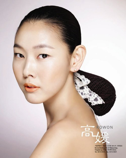 묶음 머리에는 레이스 소재의 끈을 사용, 여성스러움을 첨가했다. 특히 광택감 있는 피부 표현과 여린 살구컬러 볼터치, 그리고 상큼한 오렌지컬러 립스틱으로 행복감 가득한 신부의 모습을 연출했다.