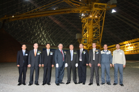 | <사진설명= ‘현대제철 일관제철소 초도 원료 입하식’에 참석한 현대·기아자동차그룹 정몽구 회장이 참석자들과 함께 원형돔을 둘러보고 있다> | ||