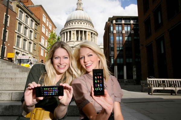 | <LG전자 모델들이 영국 런던의 성 바울 성당(St. Pauls Cathedral) 앞에서 블랙라벨 시리즈 4탄 뉴 초콜릿폰을 선보이고 있다.> | ||